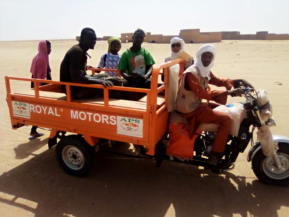 L'équipe de l'APS à Assamaka s'est donné pour mission de sécourir les personnes avec le tricycle qui ont été expulsées et qui se sont perdues lors de la marche entre le "Point Zéro" et Assamaka ou qui sont restées sur le chemin.